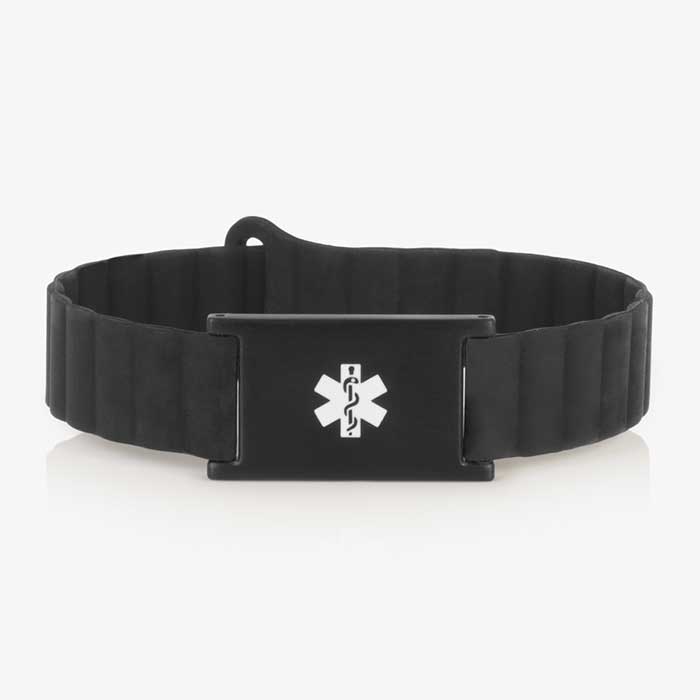 The Urban MagSport Medical Alert Bracelet in Black combines modern style with essential safety features. Designed with a fully magnetic, adjustable silicone band, this medical ID bracelet is perfect for those looking for comfort, functionality, and a sleek design. The hypoallergenic silicone band is ideal for sensitive skin, offering both durability and ease of wear.